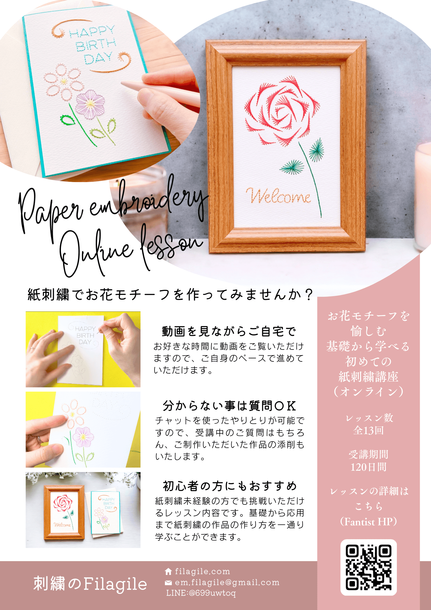 バースデーカードとウェルカムボードを作る、紙刺繍のオンラインレッスンを開講しています。