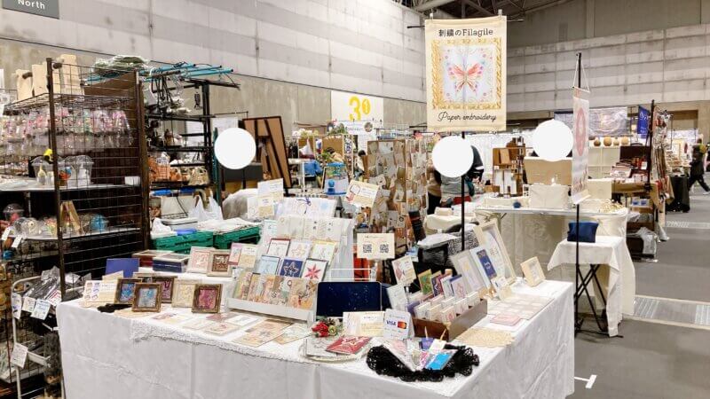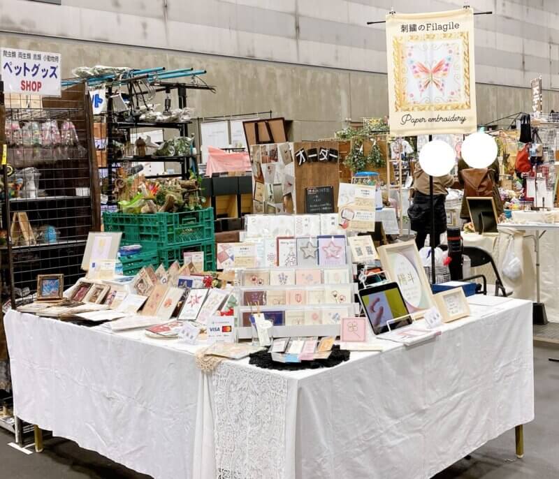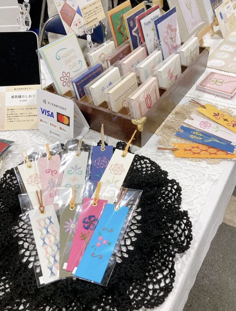 紙刺繍になじみがない方にも、直接触れて見てもらえるし、紙の硬さや手触りなども確認できるので本当に持って行ってよかったと思います。