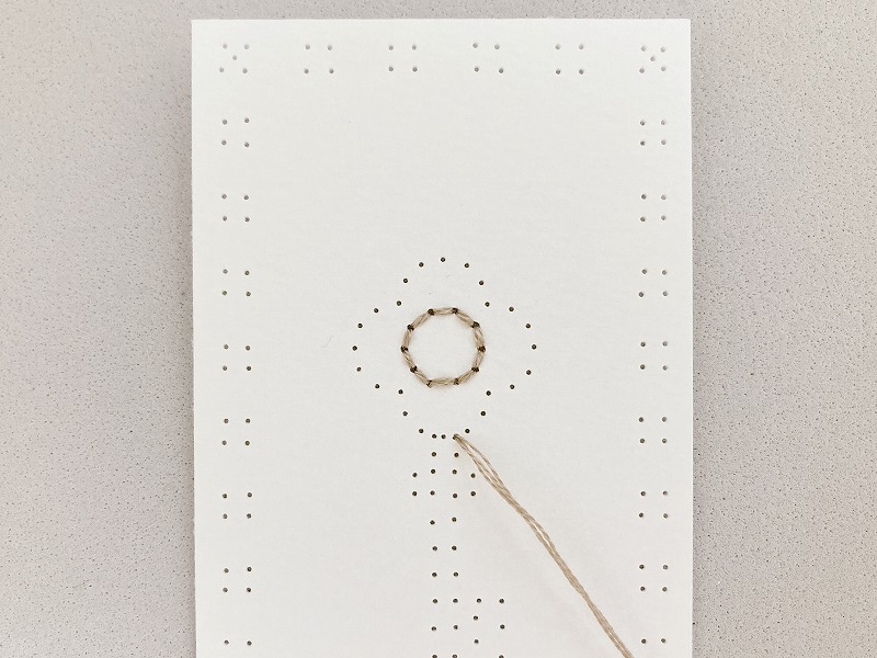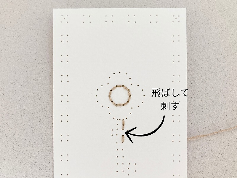 一周したら、反対周りに戻りながら刺してクロスを作っていきます。