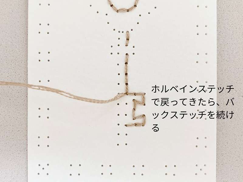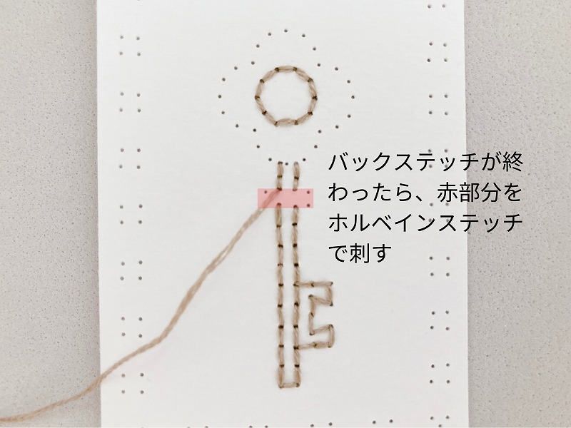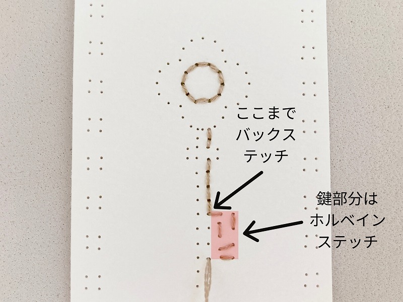 鍵穴部分の最後まで刺したら、同じくホルベインステッチで、最初のバックステッチの所まで戻ります。