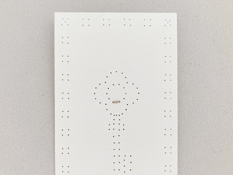 図案と、刺繍をする紙を重ねて穴をあけます。