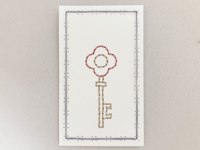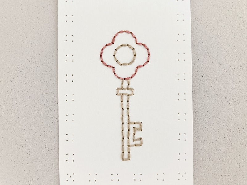 今回は、紙刺繍でラッキーモチーフの鍵のミニカードを作ります。
