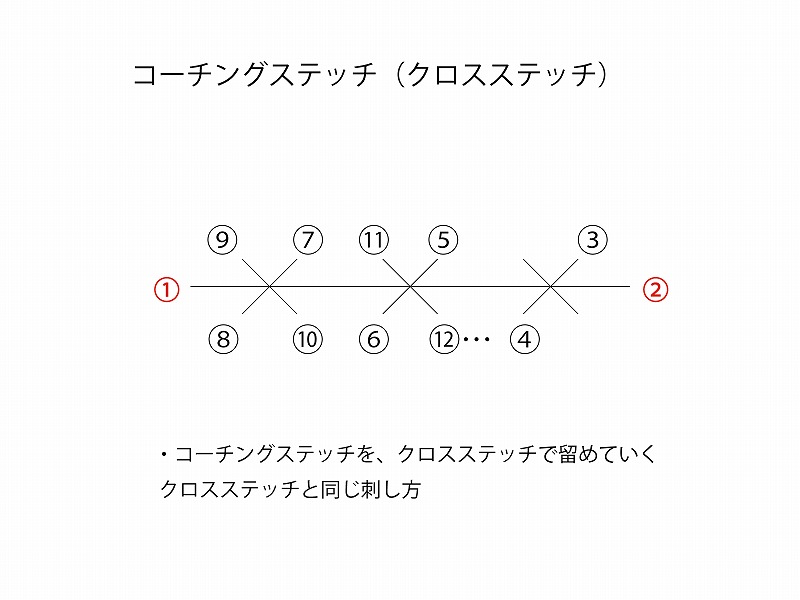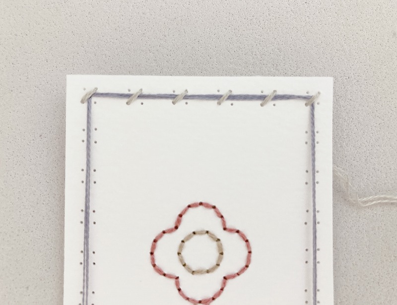 クローバーのカードを作る時にもコーチングステッチで刺していますが、今回はクロスステッチで留めていきます。