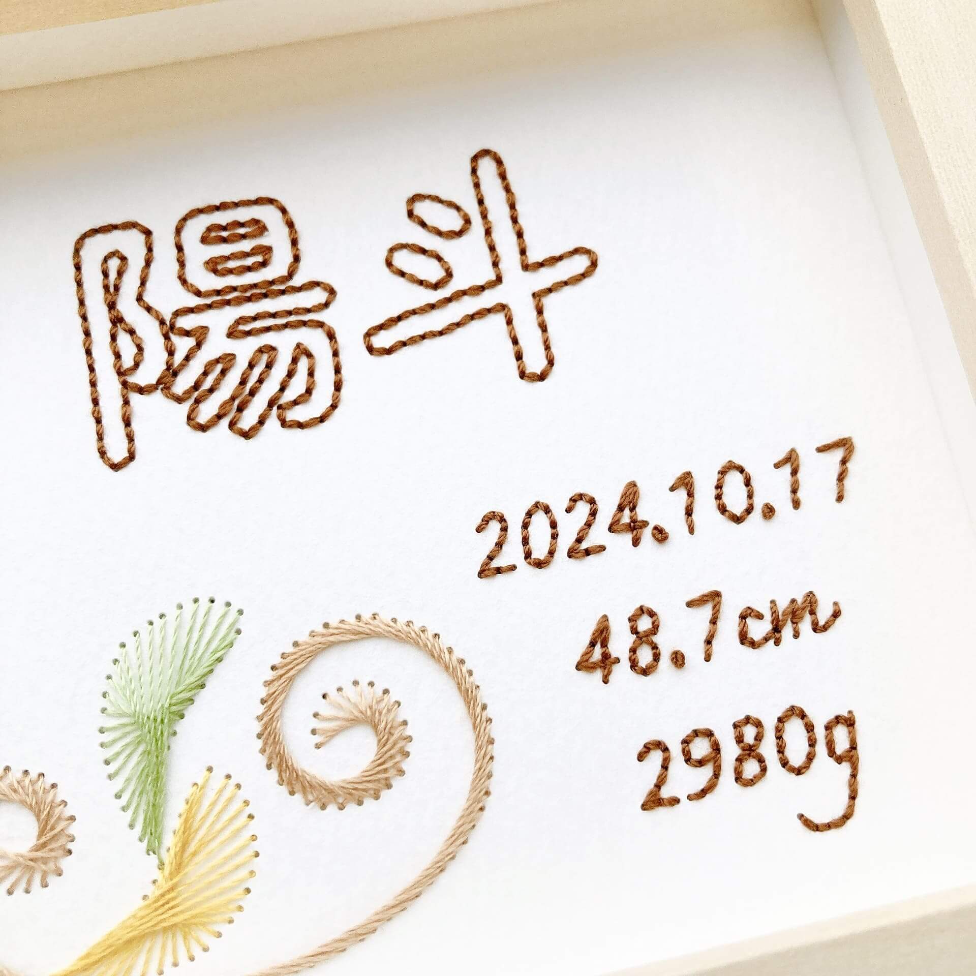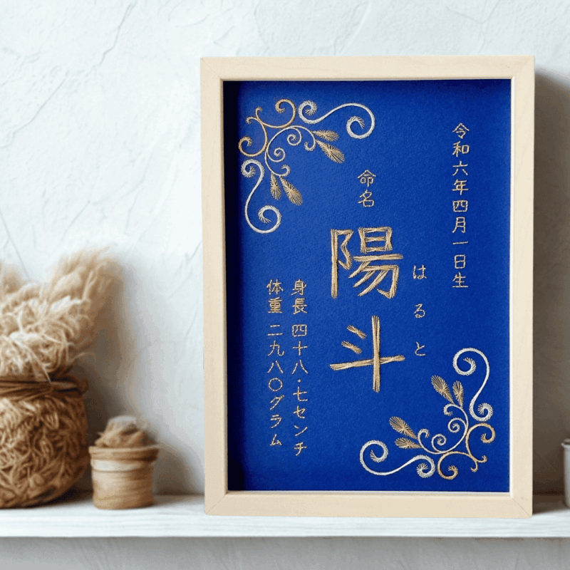 手書きや印刷で用意される方もいらっしゃいますが、刺繍のFilagileでは紙刺繍で命名書を制作しています。