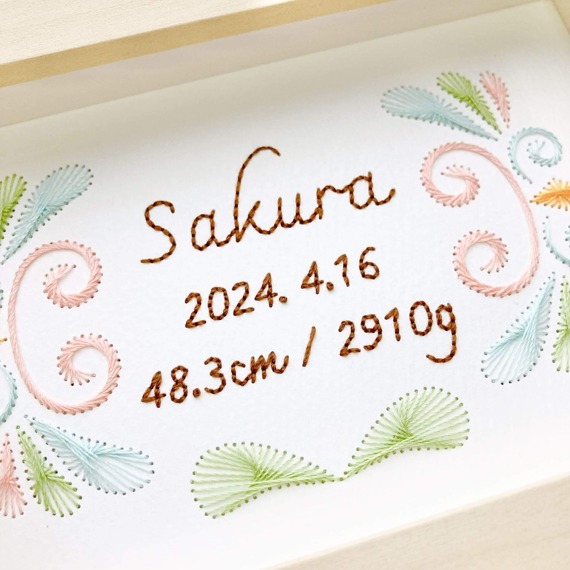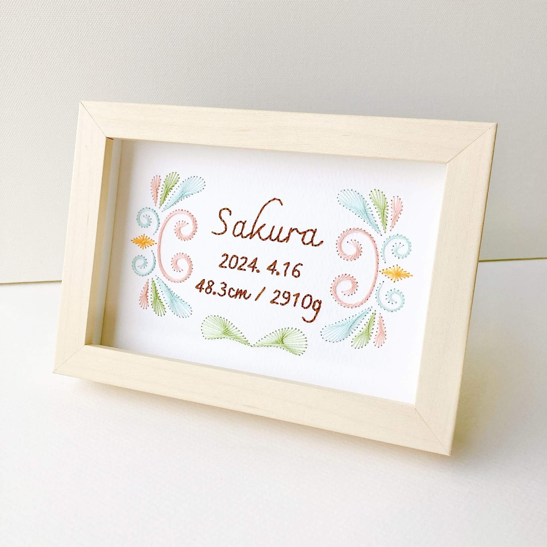 紙刺繍の命名書 春バージョン