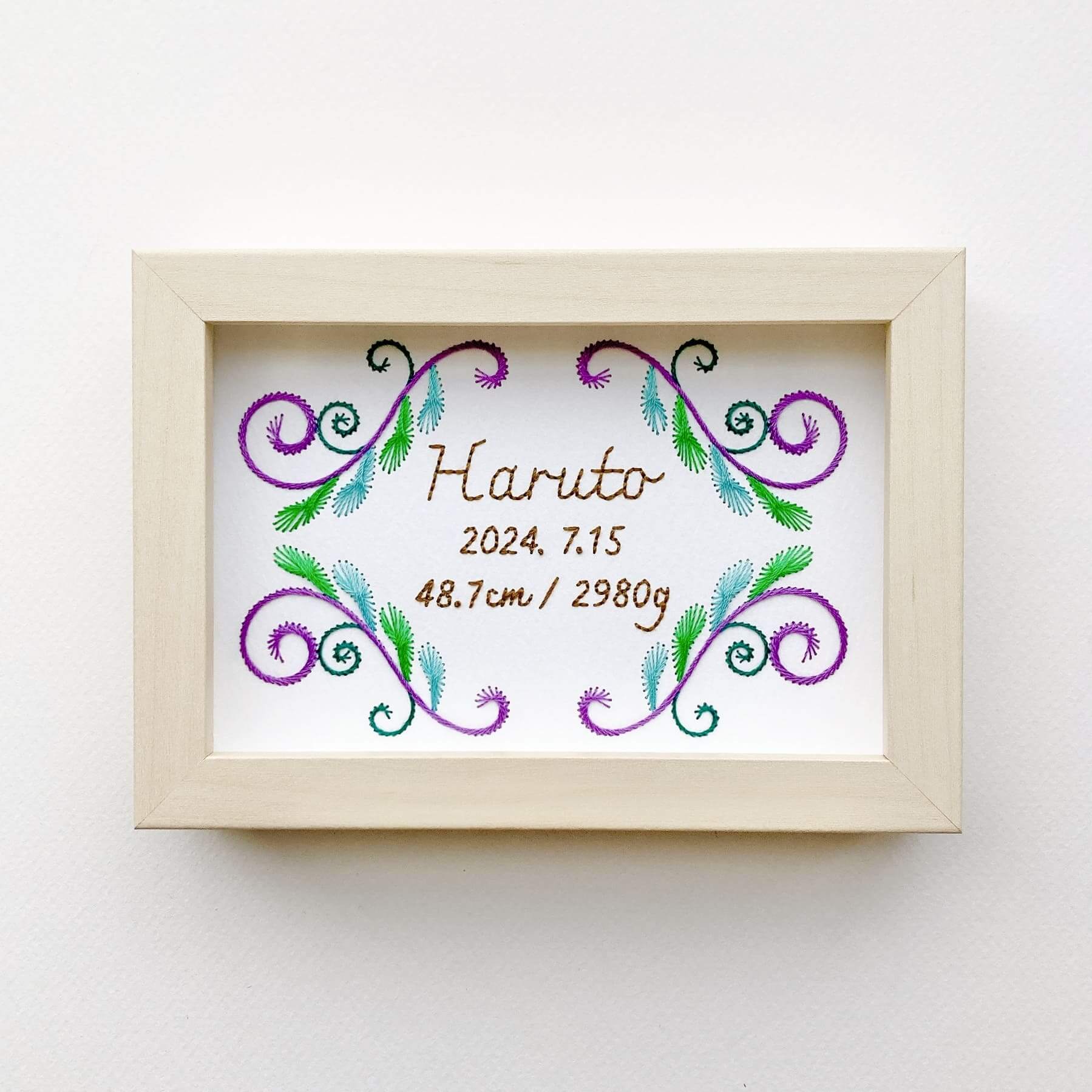 紙刺繍の命名書 アラベスク模様バージョン